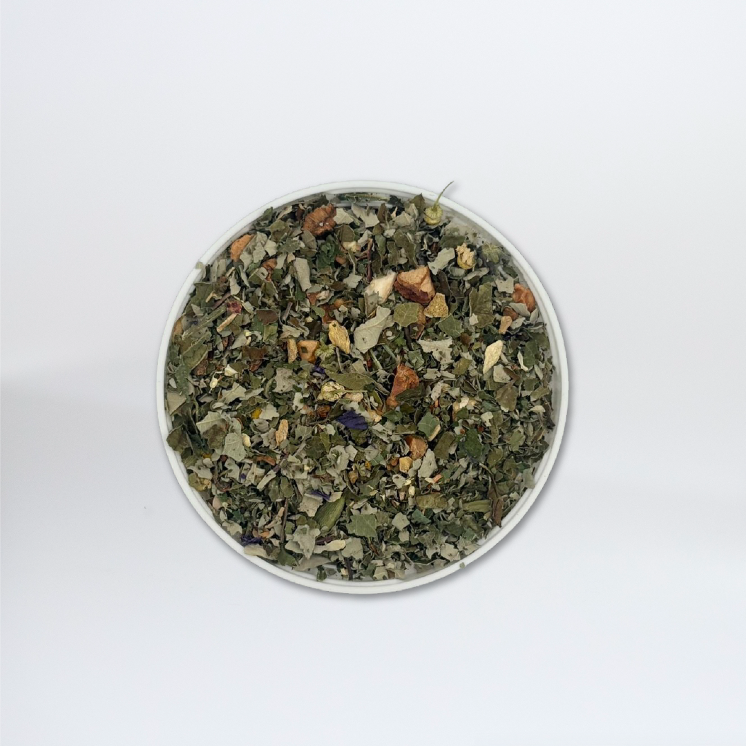 Ce mélange biologique aux notes chaleureuses mêle la pomme croquante, la feuille de mûre et le gingembre épicé dans un tourbillon d’arômes naturellement réconfortants. Les bâtons de cannelle, les écorces d’orange et les clous de girofle apportent une profondeur gourmande, tandis que la camomille, la fleur de bleuet et le rooibos naturel équilibrent la composition avec douceur et fraîcheur.